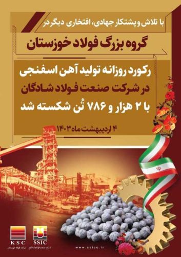 گفتنی‌است، رکورد قبلی روزانه تولید آهن اسفنجی در شرکت صنعت فولاد شادگان ٢هزار و ۷۶۶ تُن بوده است.