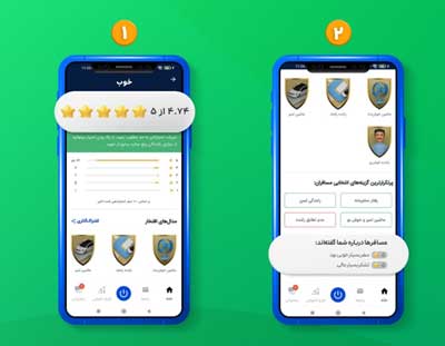 کاربران راننده میانگین امتیاز و همچنین پرتکرارترین گزینههای انتخابی مسافران را از میان نکات مثبت و منفی، به صورت ناشناس در اپلیکیشن خود مشاهده میکنند و میتوانند برای بالا بردن امتیاز حساب کاربریشان از بازخورد کاربران مسافر کمک بگیرند. بر اساس روند ارزیابی و نظارت بر عملکرد ناوگان، اگر امتیاز کاربران راننده از حد تعیینشده پایینتر بیاید، پیامی حاوی راهکارهای پیشنهادی برای ارتقای کیفیت سفرهای آیندهشان دریافت خواهند کرد و در صورتیکه امتیاز بالایی کسب کرده باشند، از مزایایی مانند طرحهای تشویقی مختلف، تخفیف استفاده از خدمات خودرویی و رفاهی بهرهمند میشوند.