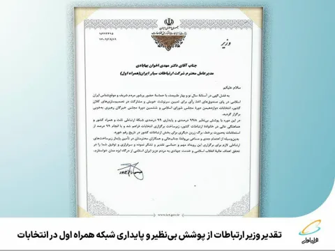 تقدیر وزیر ارتباطات از پوشش بینظیر و پایداری شبکه همراه اول در انتخابات