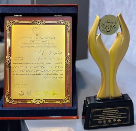 تندیس زرین و لوح سومین کنگره بینالمللی مسئولیت اجتماعی سفیران سلامت خاورمیانه به واسطه اقدامات اثربخش اجتماعی کلینیک پوست و مو و زیبایی نیایش به محمد عمیقی مدیرعامل این مجموعه اهدا شد