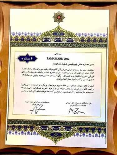 پتروشیمی شهید تندگویان موفق به کسب تقدیرنامه شش ستاره جایزه داراییهای فیزیکی شد.