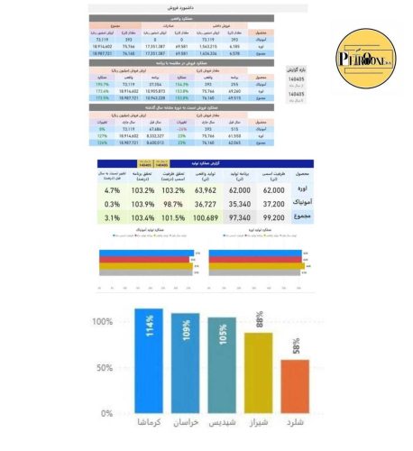 در دوره ماهانه (مرداد ۱۴۰۴): کرمانشاه ۱۱۴% ظرفیت اسمی – یعنی ۱۴% بالاتر از سقف طراحی عمل کرده است- این عملکرد فراتر از ظرفیت طراحی، معیار مهمی از بهرهوری و مدیریت تولید است.