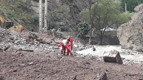 سيل در جاده چالوس / امدادرسانى ١٢ تيم عملياتى در منطقه سيل زده فراخوان جمعیت هلال احمر برای اعزام نیروهای داوطلب امدادی، بهداشتی و درمانی به لبنان