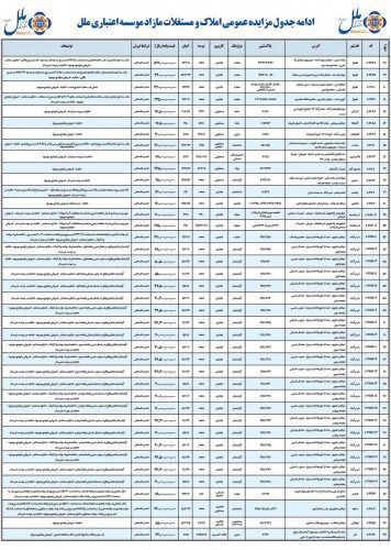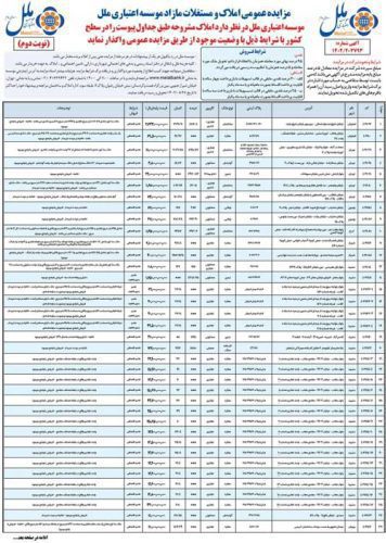 خبر روزانه – موسسه اعتباری ملل در نظر دارد املاک مشروحه طبق جداول پیوست را در سطح کشور با شرایط ذیل با وضعیت موجود از طریق مزایده عمومی واگذار نماید