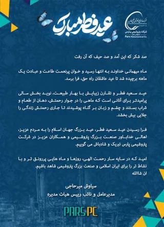 خبر روزانه – پیام تبریک سیاوش میر حاجی به مناسبت عید سعید فطر