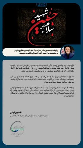 پیام تسلیت مدیرعامل شرکت پالایش گاز هویزه خلیج فارس به مناسبت فرا رسیدن ایام تاسوعا و عاشورای حسینی