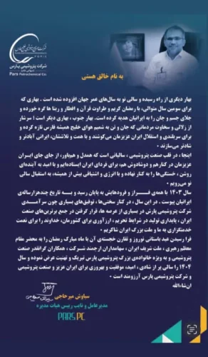 پیام نوروزی مهندس میرحاجی مدیرعامل شرکت پتروشیمی پارس